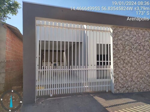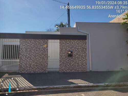 Descrição: Casa, Padrão, Ocupado, 1 vaga(s) de garagem. Área(s): 360 m² de área terreno, 161 m² de área construída, 161 m² de área privativa. Matrícula(s): 12.533. Cartório: 1° CRI ARENAPOLIS. Inscrição da Prefeitura: 01.008.0010.0006.001.