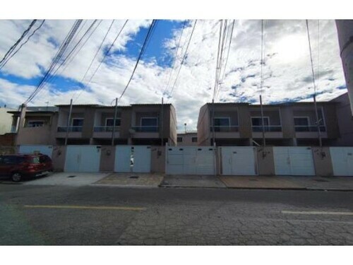 Distribuição interna: primeiro pavimento composto de sala, cozinha, lavabo, garagem e área de serviço, segundo pavimento por dois quartos, hall, banheiro e varanda.