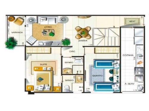 Distribuição Interna (conf. laudo): Sala de estar/jantar, cozinha, área de serviço, banheiro social, varanda e 02 dormitórios (sendo 01 suíte).