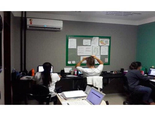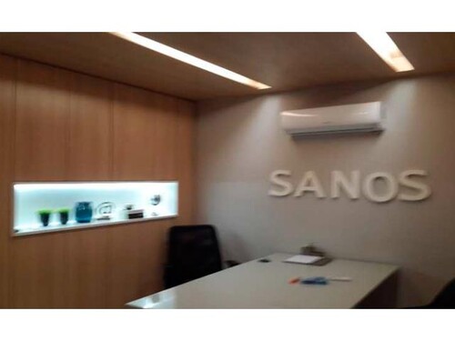 Distribuição Interna (conf. laudo): Recepção, banheiro social, copa e 8 salas.