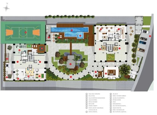 Área de lazer: piscina, quadra poliesportiva, fitness, salão de jogos, salão de festas, brinquedoteca, espaço gourmet.