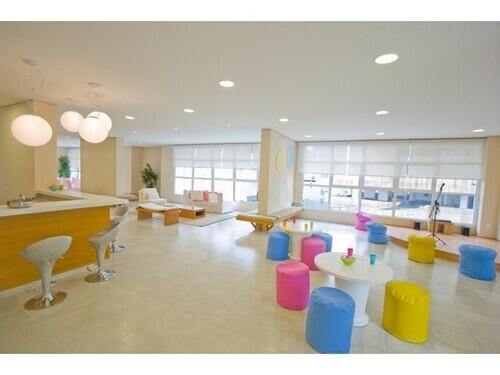 Área de lazer: piscina, brinquedoteca, academia, salão de beleza, playground, lan house, spa.