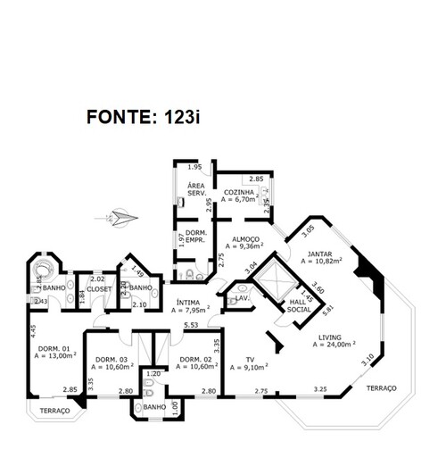 Área privativa: 195,55m²
